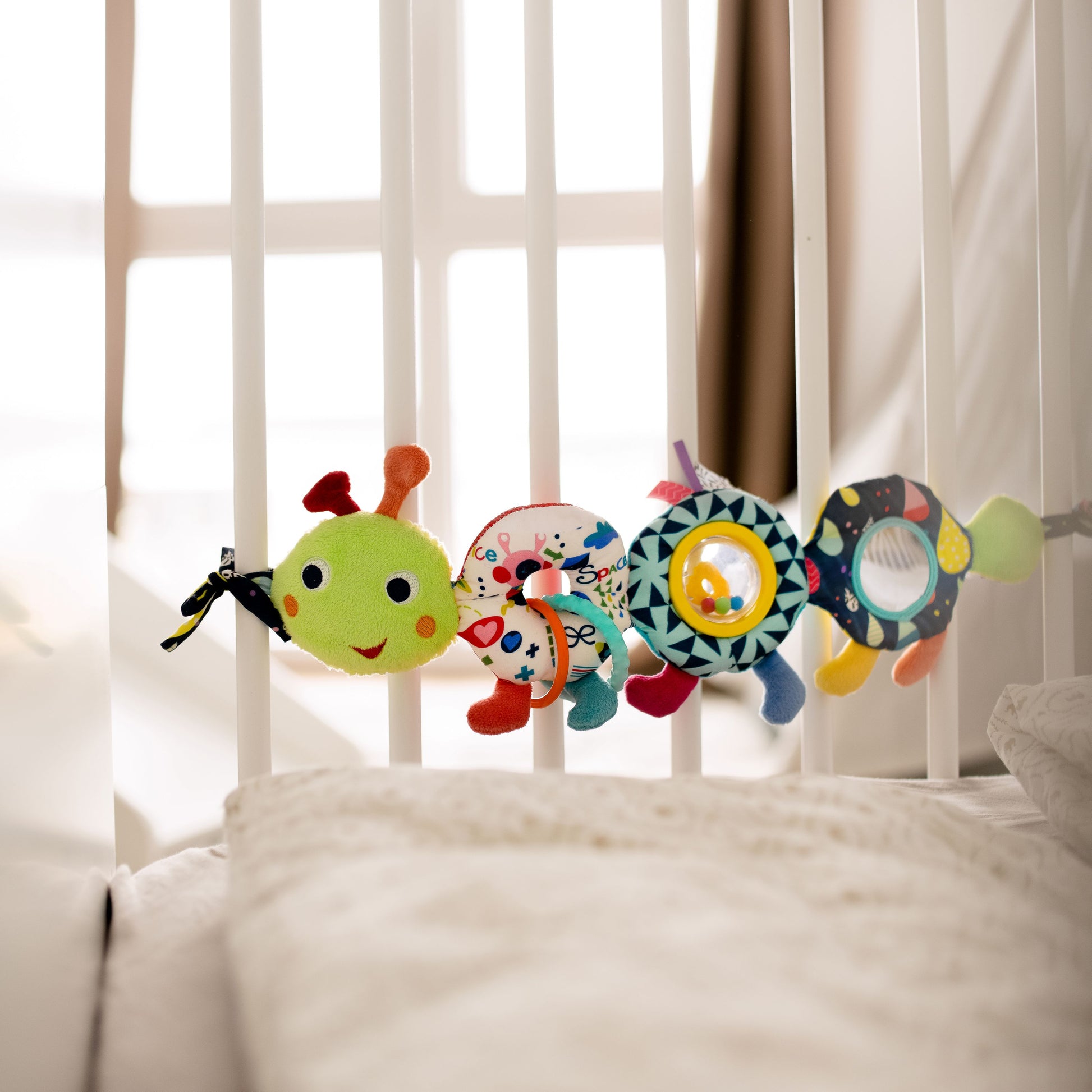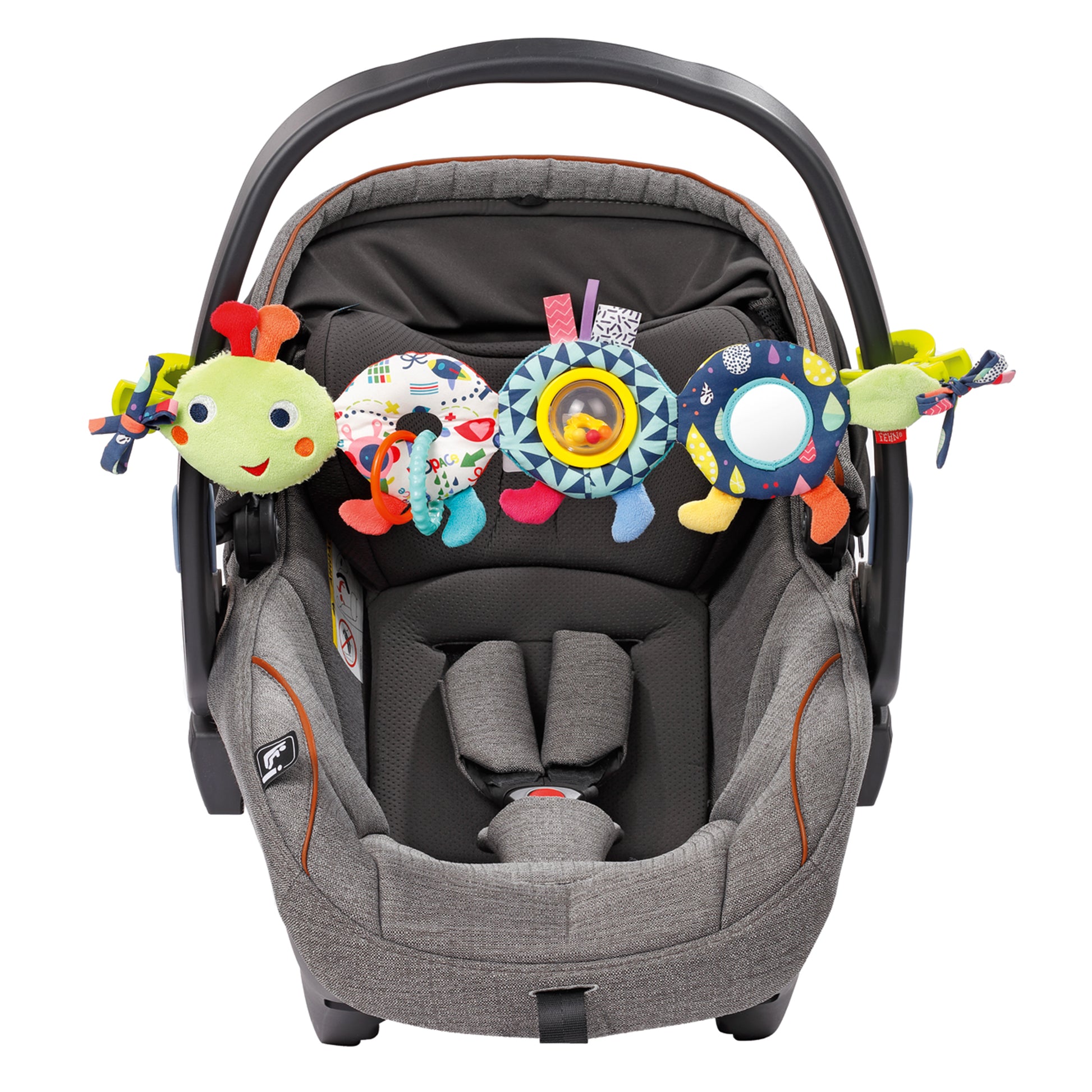 Brightcoloursand friendly shapes make this little caterpillar a delightful companion for curious eyes and tiny hands. Designed to bring playful moments into everyday routines, it adds gentle engagement whether at home or on the go.This soft and interactive motoric toy features a squeaker, ball rattle, mirror, grasping rings and crinkly paper, stimulating the senses while supporting hand-eye coordination and early development from birth. Easily attachable with sturdy clamps, it can be secured to prams, capsules,cotsor playpens, ensuring comforting play and discovery wherever little ones are.
