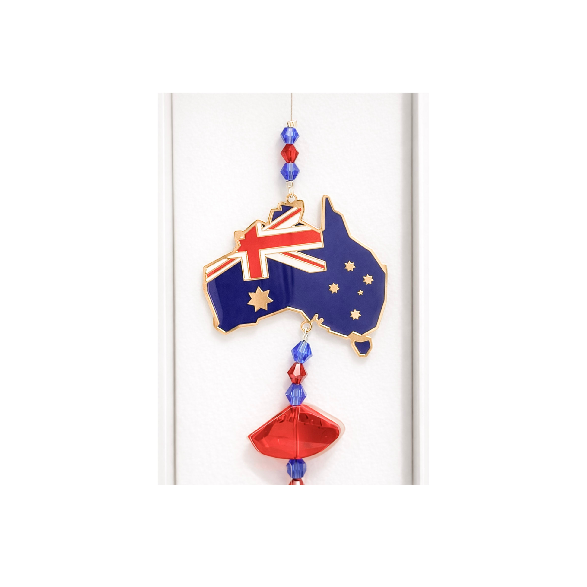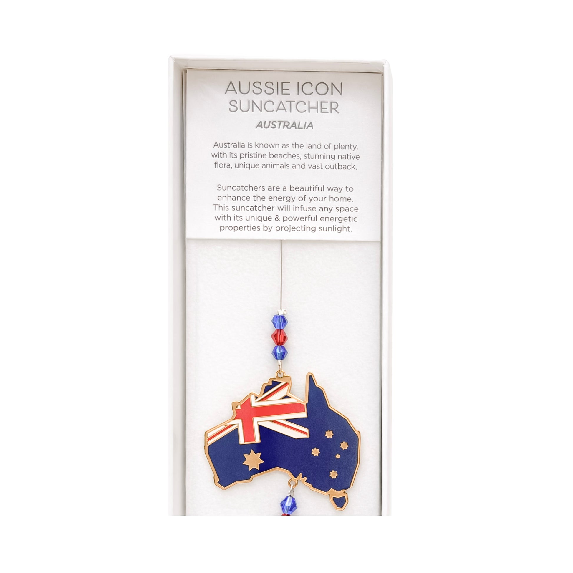 A tribute to light and landscape, this Australia-shaped sun catcher reflects warmth and connection. Perfect as an Australian-themed crystal sun catcher for bright spaces.